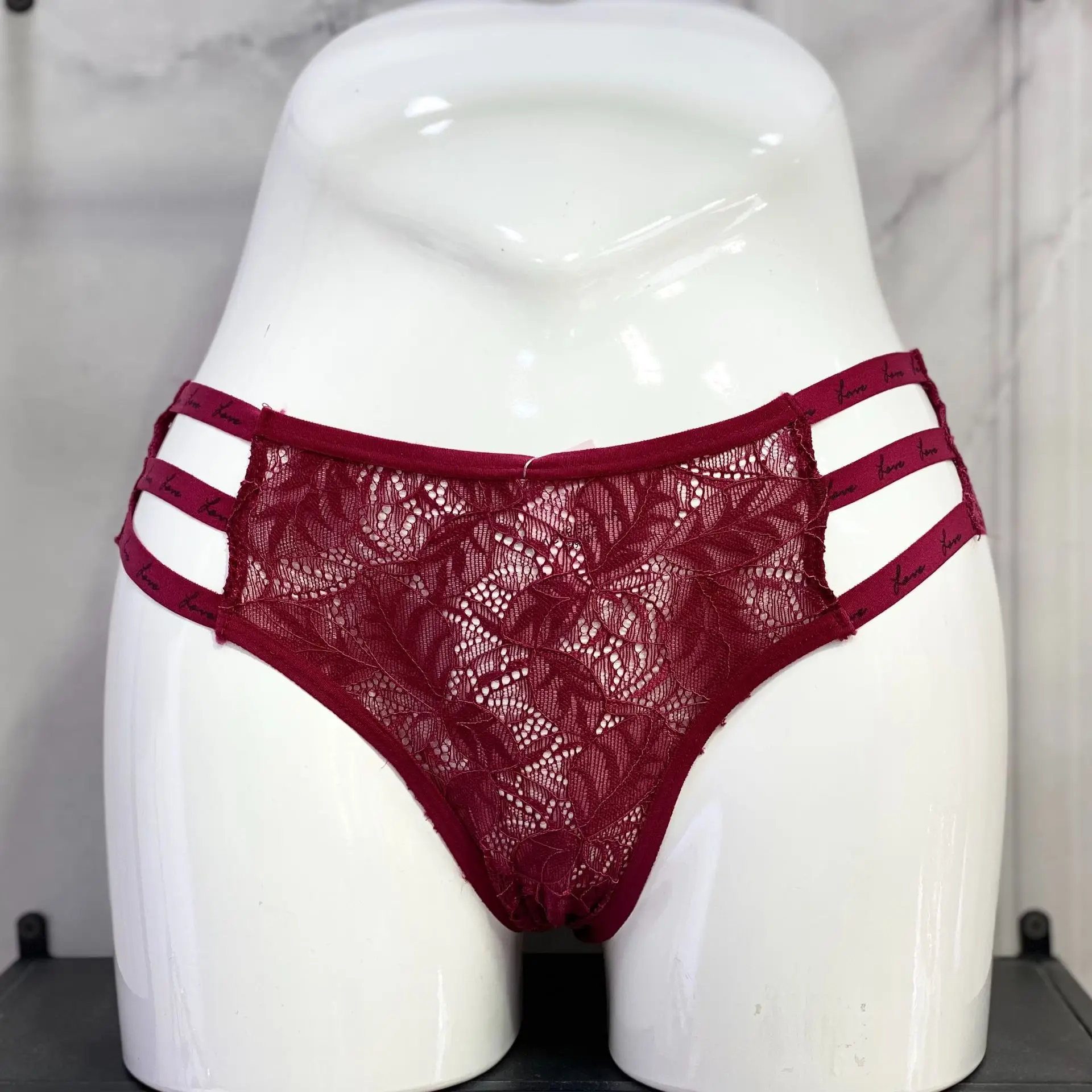 Packaging Details: Professional and safe package, each piece with bubble bag and carton box. Products will be tested before we sent out to our customers. 2023 Ladies Cotton Sheer Wavy Trim Lace-Trimmed Secret Panties Monogrammed Spaghetti Strap Cut-Out Underwear in Bulk