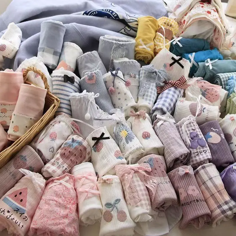 Women's Underwear Bulk Cheap Stock Underwear Women Lovely Japanese Cotton Anti-bacterial Mid-waist Briefs